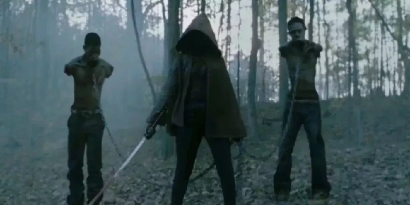 Este episodio es posiblemente el momento más poderoso de Michonne. Aunque se encuentra en un estado vulnerable y es reacia a herir al enemigo, hace lo que debe para proteger a sus hijos. Michonne es casi imparable cuando defiende a sus seres queridos. Ese es un aspecto icónico de su caracterización que es fundamental comprender y revisar antes de ver Los que viven.