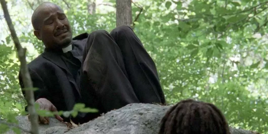 Las grandes presentaciones de personajes suelen permitir que el público sepa todo lo que necesita sobre un personaje en cuestión de segundos. En el primer encuentro del grupo con el padre Gabriel, de Seth Gilliam, era evidente que la cobardía ocupaba un lugar destacado en su lista de rasgos de carácter.