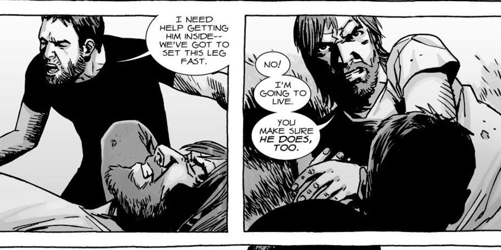 El penúltimo número de los cómics trata del impacto de la muerte de Rick a manos de Sebastian Milton. La apertura en sí es un asunto de corazón, ya que el destino de Rick se deja ambiguo hasta que Carl se encuentra con su padre reanimado como un caminante.