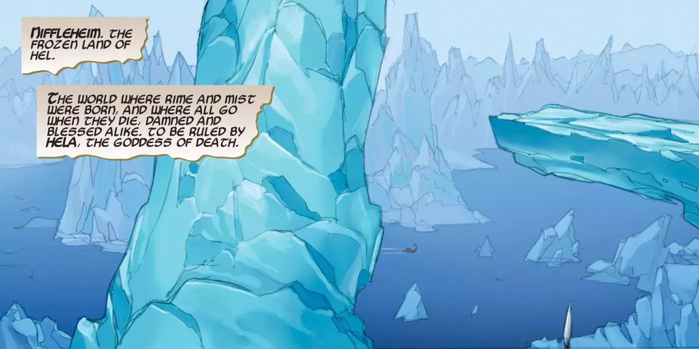 Niffleheim es el yin del yang de Muspelheim, una tierra de montañas heladas, llanuras azotadas por el viento y agujas de hielo. Niffleheim se encuentra al otro lado del Ginnungagap (que significa "abismo bostezante") de Muspelheim. Al principio de los tiempos, los dos reinos del fuego y el hielo convergieron en el abismo y provocaron la creación del resto del Árbol del Mundo.