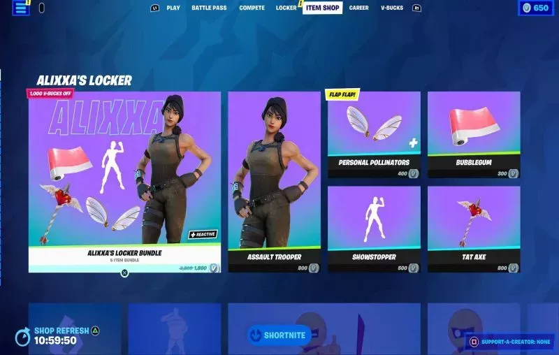 - Paquete de casillero de Alixxa (incluye todos los artÃculos enumerados a continuación) - 1.800 V-Bucks