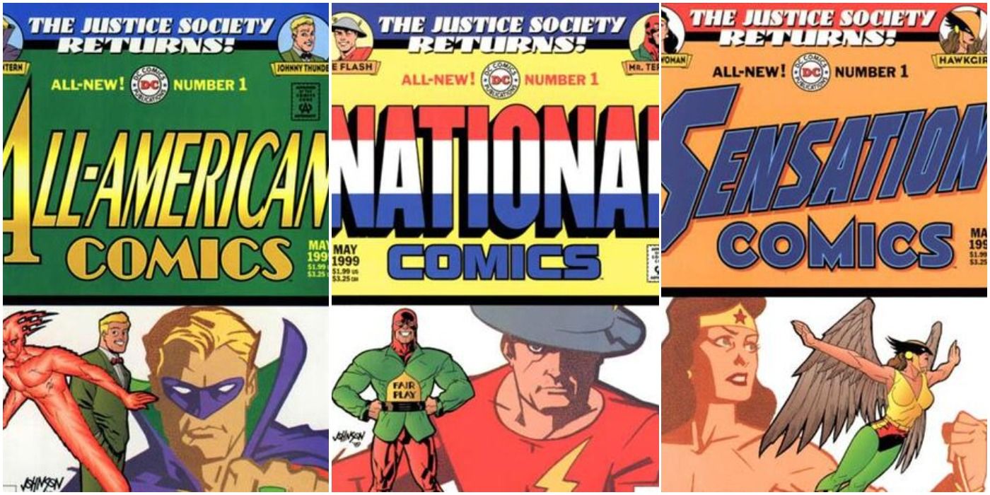 En 1999 se produjo una carrera más corta llamada Justice Society Ret urns, que fue un concepto mucho más amplio de lo que cualquier aficionado podría haber anticipado. La premisa detrás de esta historia vio revivir a los muchos héroes de la Edad de Oro y sus respectivas historietas para un último tributo. Además de un pequeño retorno para All Star Comics, otros grandes títulos como All-American Comics, National Comics y Sensation Comics también se incluyeron en esta historia haciendo revivir.