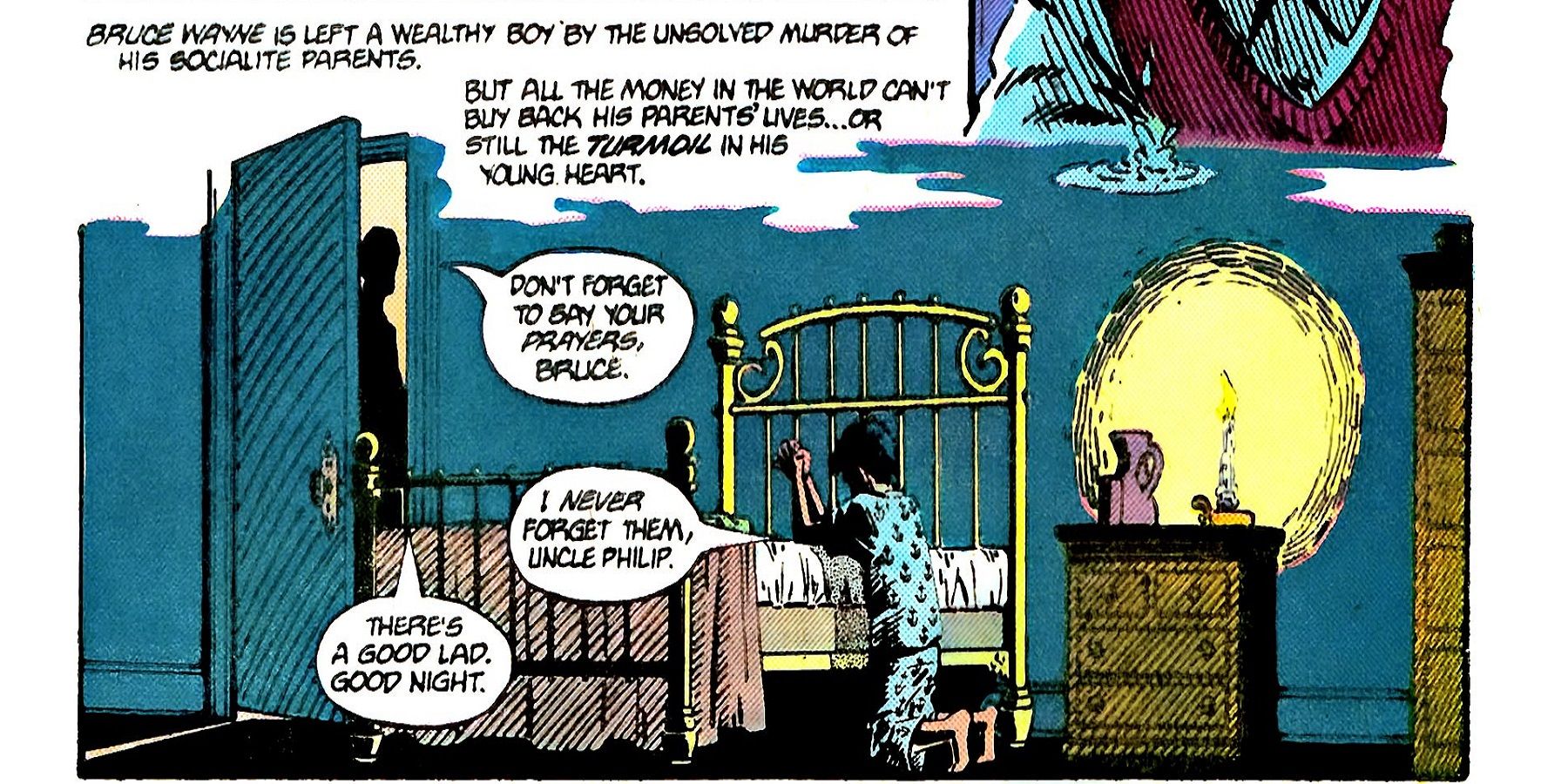 Cuando el concepto de Batman fue introducido por primera vez, en realidad no había una versión de Alfred en la historia de Bruce. El personaje se introdujo más tarde, y al principio no se menciona en absoluto cómo fue criado. No se explica cómo se crió esta versión de Batman hasta años más tarde, durante una historia de Orígenes Secretos donde se revela que el tío de Bruce, Philip, lo cuidó durante un tiempo. Philip Wayne es en realidad una creación de la Edad de Plata, introducida por primera vez en Batman #208.