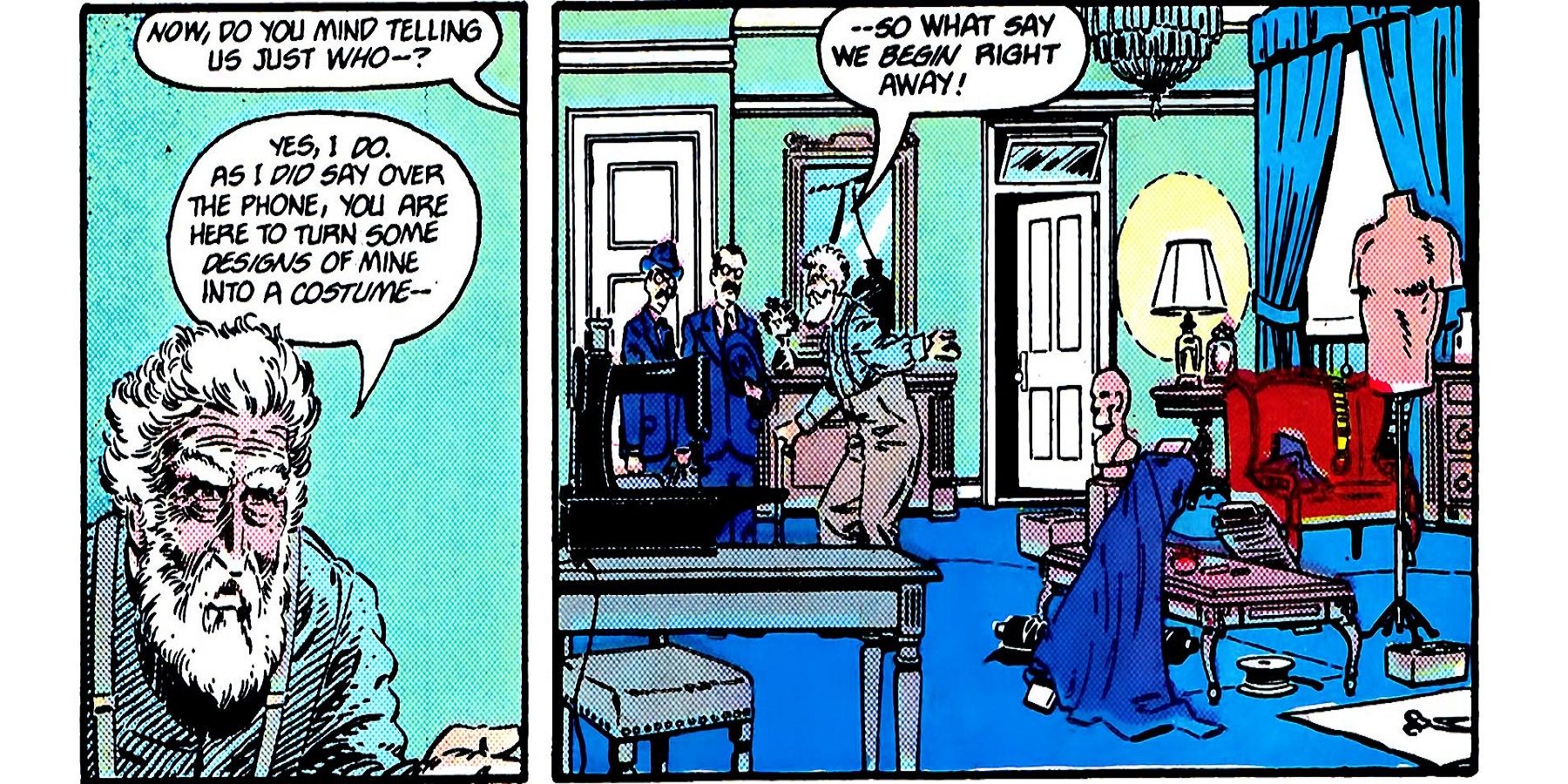 Fue la pasión de Bruce por el teatro lo que le llevó a elegir un disfraz en primer lugar. Pero en cuanto a cómo hizo el traje, empleó a un par de los mejores diseñadores de vestuario para reunirse con él en un hotel en Ciudad Gótica. A los dos se les pagó generosamente no sólo para que hicieran el traje, sino para que no lo dijeran, y sin saberlo, crearon el traje de uno de los más grandes luchadores contra el crimen.