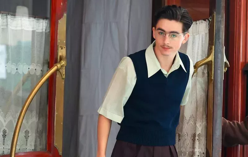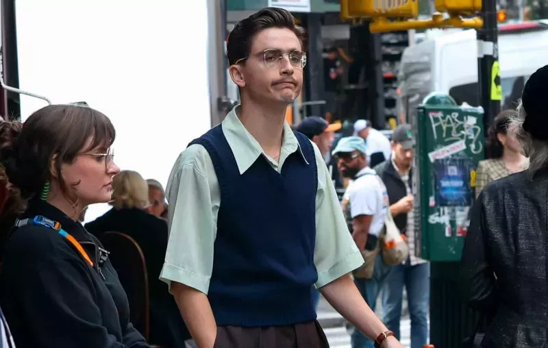 Ahora han salido a la luz las primeras imágenes de Chalamet disfrazado, con un peinado de los años 50, bigote negro de lápiz y gafas redondas de montura de alambre, con un jersey azul sobre una camisa pálida. El rodaje de la película ha comenzado recientemente en Uptown Manhattan.