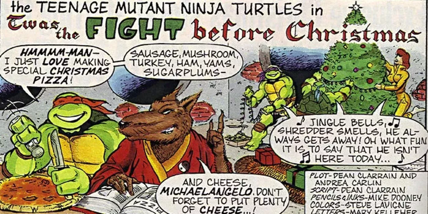 "Twas the Fight Before Christmas" (por Dean Clarrain, Andrea Carlin y Michael Dooney, publicado en la edición de diciembre de 1990 de Ladies' Home Journal), era a todos los efectos una nueva versión del clásico de Eastman y Laird de 1985, "The Christmas Aliens" (Los alienígenas de Navidad). En la nueva versión, es Rafael quien se encarga de salvar el día, y ese cambio aparentemente insignificante lo es todo.