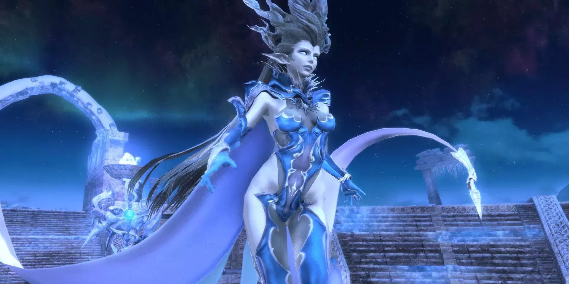Una de las primeras invocaciones en las que piensan los fans de Final Fantasy es Shiva, y con razón. Shiva, junto con Ifrit y Bahamut, son las tres invocaciones más importantes de la serie Final Fantasy, ya que han aparecido en casi todos los Final Fantasy principales. Resulta difícil imaginar un Final Fantasy sin ella o sin alguna de las grandes invocaciones, dada su popularidad. Shiva es una invocación elemental de hielo que suele aparecer con el pelo largo y azul, la piel pálida y poca ropa.