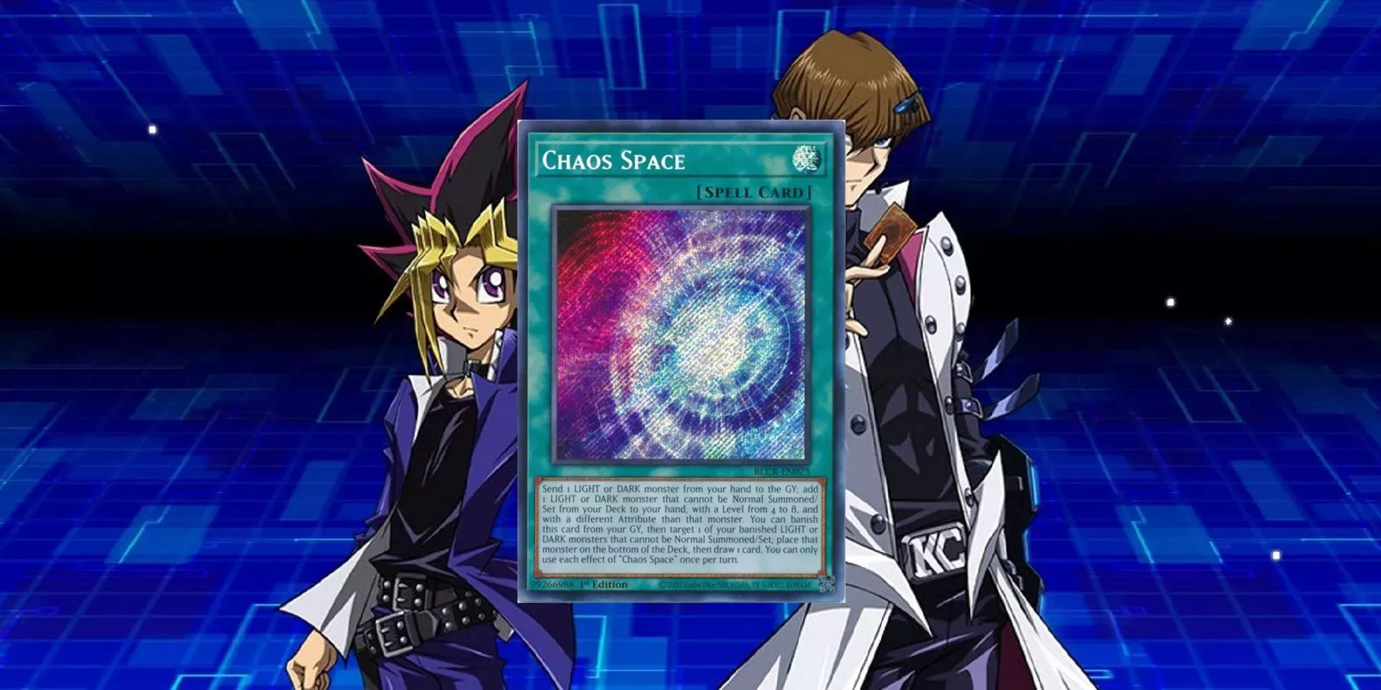 Espacio del Caos, que pasa de tres a una copia, es nada menos y nada más que un éxito de Dragon Link. Aunque teóricamente podría usarse como hechizo de búsqueda y robo para cualquier baraja que use monstruos de Luz y Oscuridad, la mayoría de las veces la carta encontró un hogar dentro de la baraja Dragon Link.