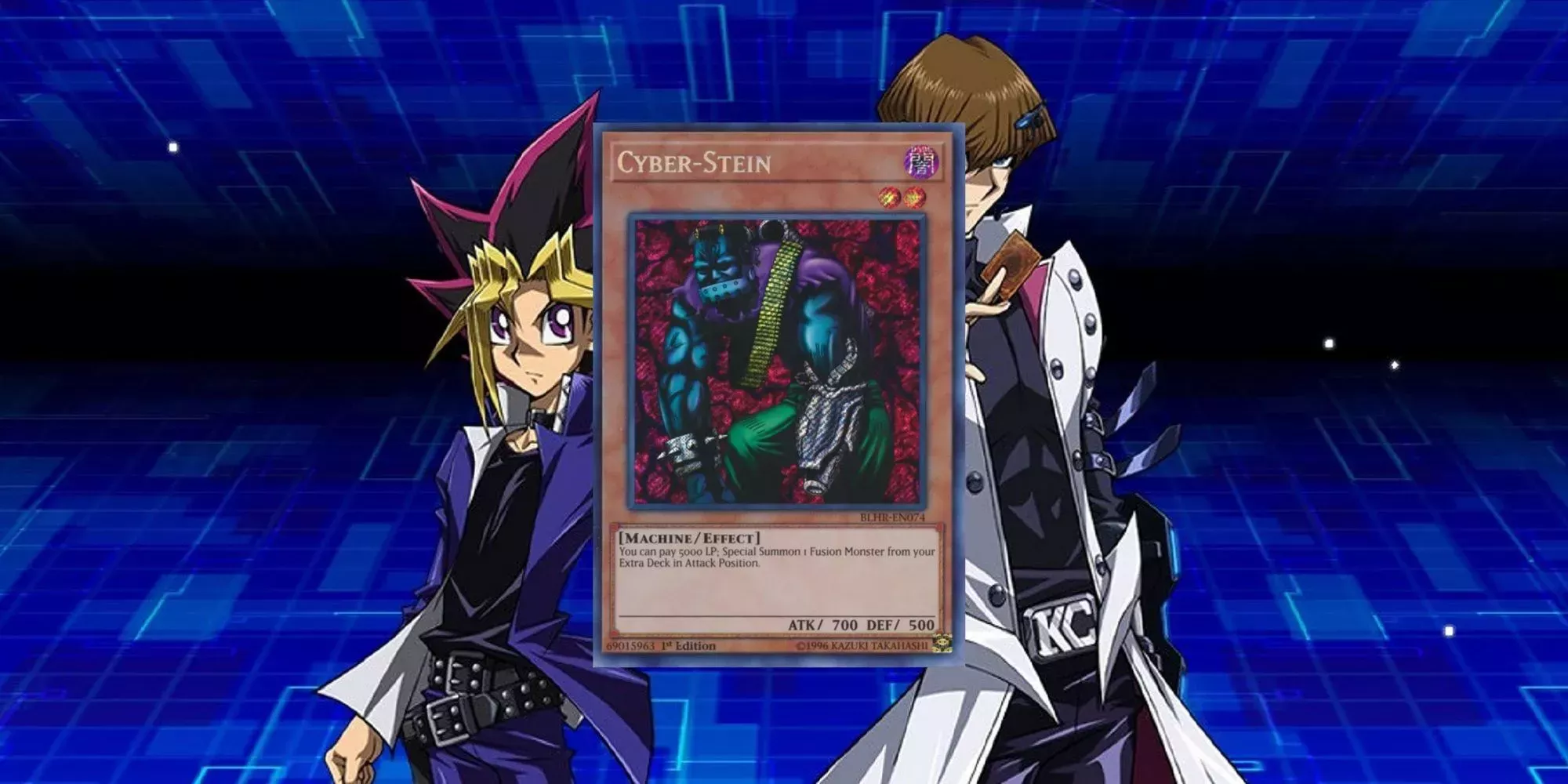 Cyber-Stein es un ejemplo de una carta que no puede volver nunca sin ser errata'd. Con casi dos décadas de antigüedad, la carta tiene el efecto bastante simple de permitir al jugador invocar de forma especial a cualquier Monstruo de Fusión del mazo extra por 5000 puntos de vida. Esta carta pasó años en la lista de prohibidas antes de que Konami la recuperara recientemente, sólo para descubrir que es tan molesta ahora como lo era entonces.