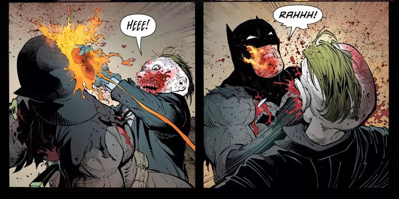 En uno de sus enfrentamientos más brutales, los dos archienemigos se apuñalaron en una cueva bajo Gotham que acabó derrumbándose sobre ambos. Afortunadamente, Batman revivió gracias a una piscina regenerativa, aunque no recordaba haber sido nunca el Caballero Oscuro.