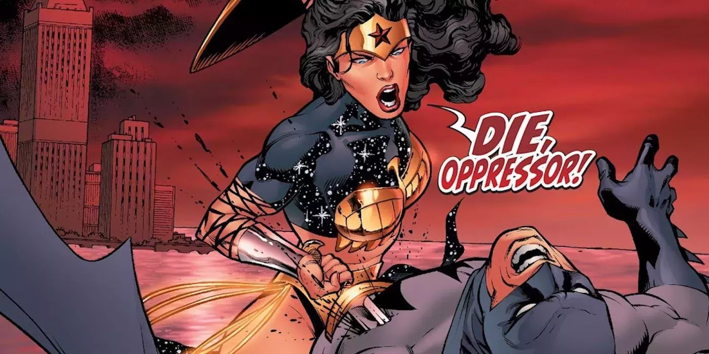 Wonder Woman reunió a los rebeldes para acabar con el régimen y terminó empalando a Batman con su espada. Después fue eliminada por un furioso Superman, enfurecido por la pérdida de su mejor amigo.