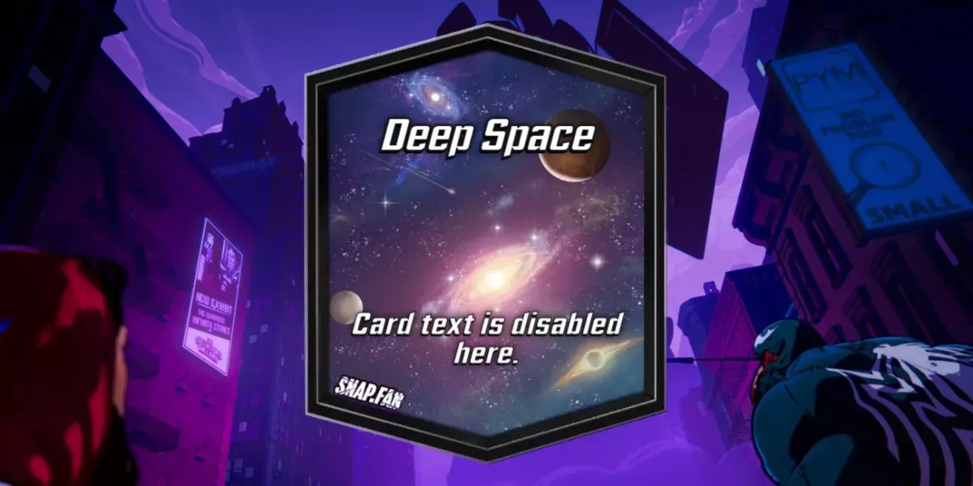Todas las cartas se vuelven ordinarias en el Espacio Profundo, una de las nuevas localizaciones añadidas a Marvel Snap en la temporada de Grandes Éxitos de los Guardianes. Ninguna carta en esta ubicación puede conservar su texto, lo que significa que cartas como Mancha Solar y Nébula sufrirán tanto como las que tienen habilidades En curso o Al revelar.