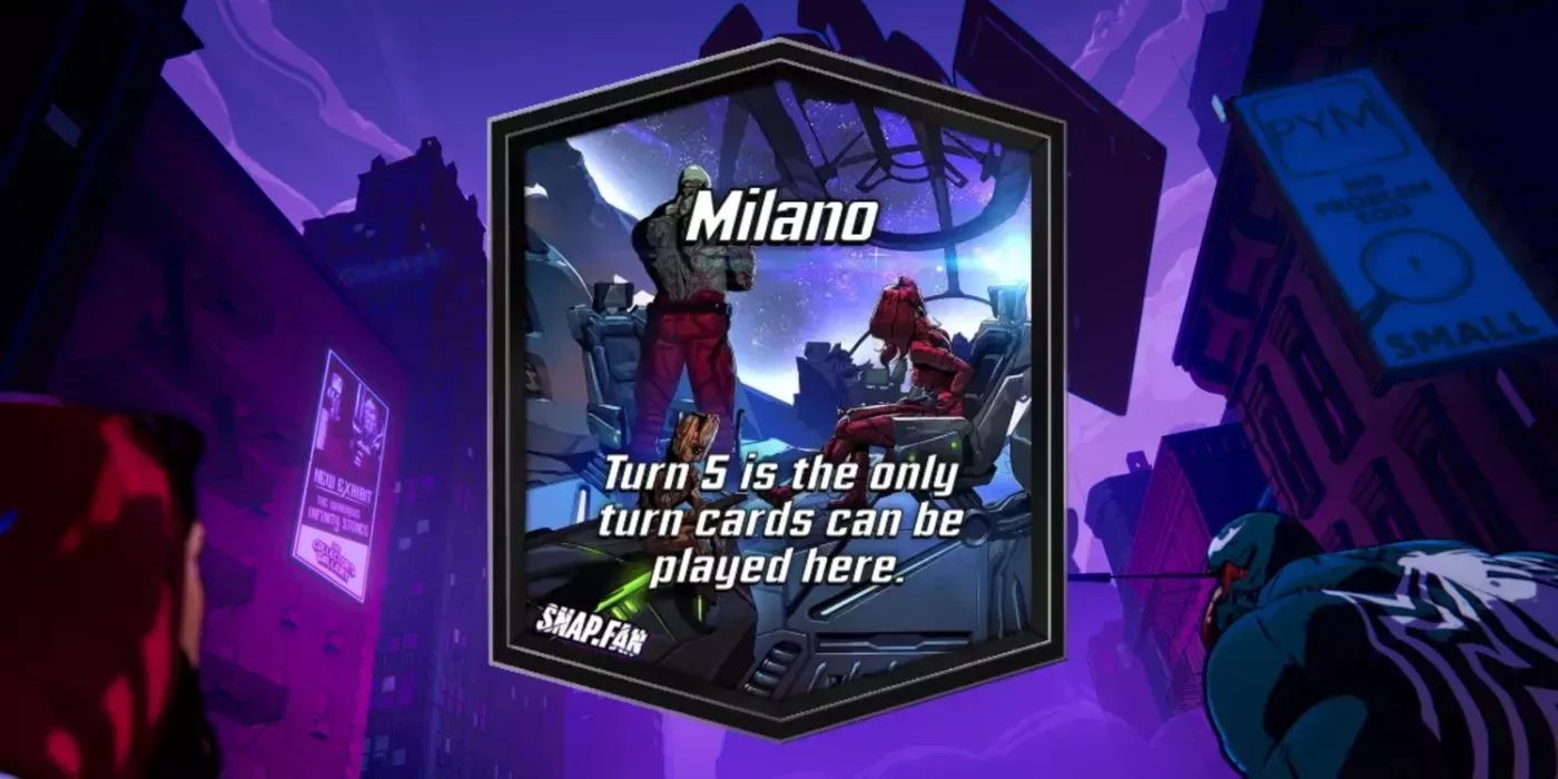 Restringir Milano a un solo turno provocará el caos y, al mismo tiempo, permitirá que las cartas de Guardianes de la Galaxia brillen. Esta urgencia por colocar cartas aquà en el turno 5 permitirá a los jugadores predecir y usar cartas como Gamora y Drax para obtener una potencia más devastadora. Cartas como Jeff y el Doctor Doom podrán seguir influyendo en este lugar en otros turnos, pero añade una dinámica interesante al juego.