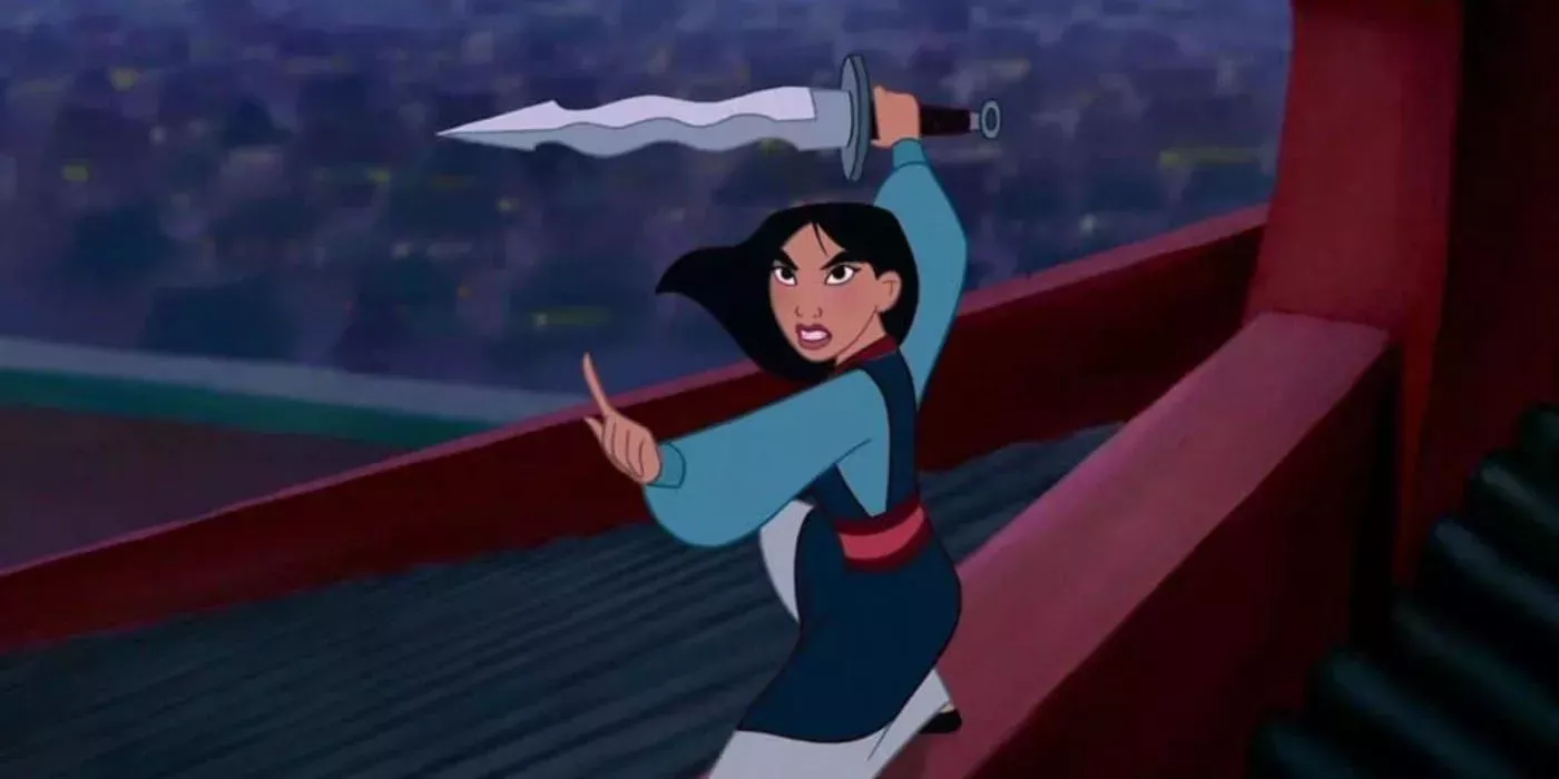 Mulan, la película de Disney de 1998, se basaba en el folclore chino, concretamente en La balada de Mulan. Sigue la historia de Mulán, que no encaja en las expectativas sociales de las mujeres solteras. En lugar de abrazar la feminidad y prepararse para el matrimonio, se presenta voluntaria para combatir en nombre de su anciano padre. Se distingue de las demás princesas Disney por muchas razones, pero sobre todo porque no pertenece a la realeza y es la primera princesa Disney que no es princesa en su película.