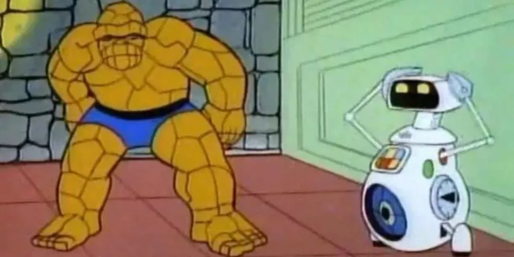 Fred y Barney Meet The Thing contaba la historia en solitario de la Cosa, sin ningún otro miembro de los Cuatro Fantásticos. De hecho, la serie se desviaba casi por completo de los cómics y presentaba a Benjamin o "Benjy" Grimm como un estudiante de secundaria involucrado en aventuras adolescentes. Quizás este alejamiento de los orígenes del personaje en los cómics sea la razón por la que la serie no ha sido una pieza especialmente popular del archivo de Marvel.