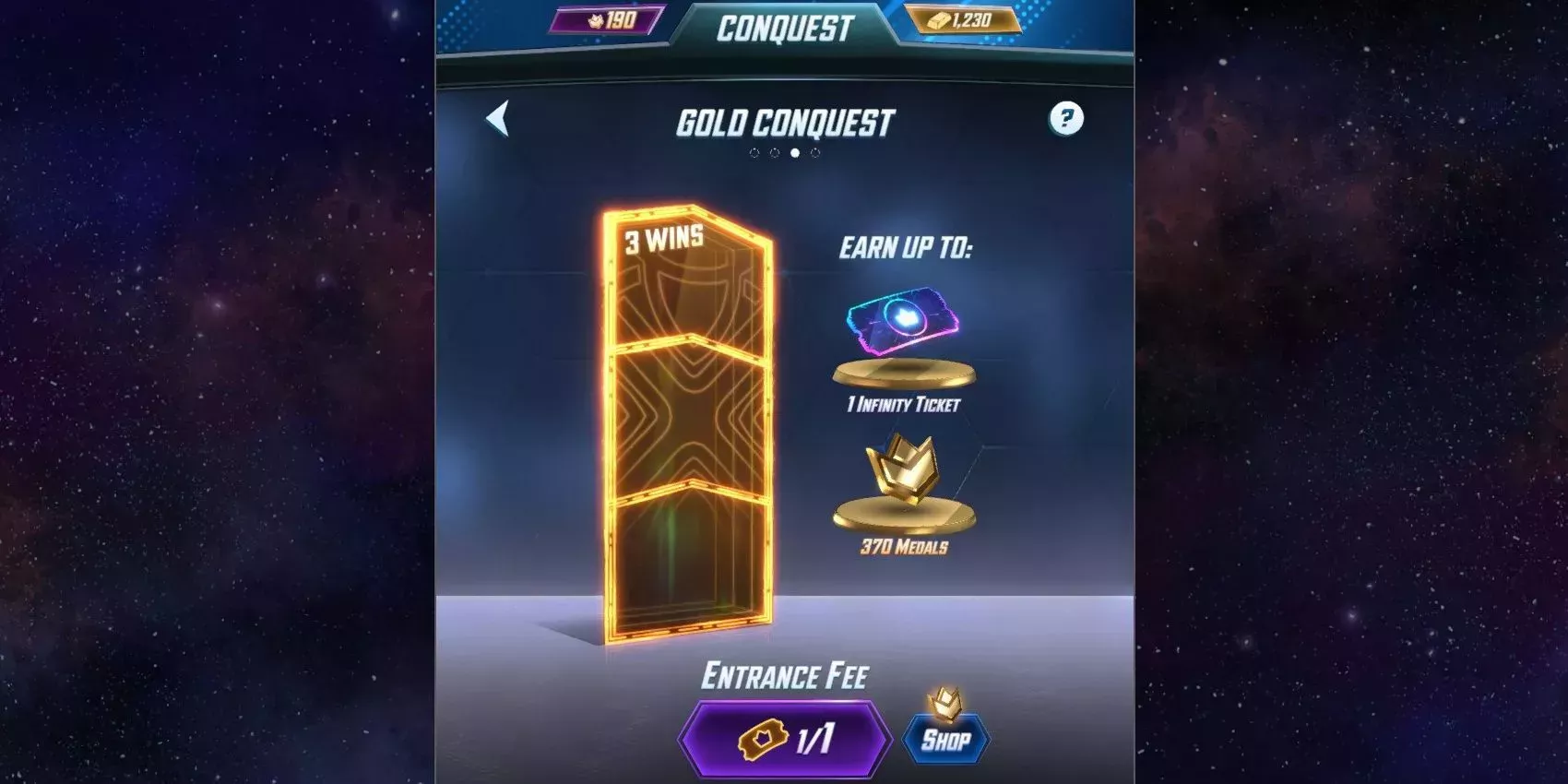 Aunque Marvel Snap intenta guiar a los jugadores para que se ganen su camino a través de los niveles en Conquista, los jugadores pueden gastar Oro para entrar en lugar de ganar las entradas. Proving Grounds sigue siendo gratis, pero la entrada a Silver cuesta 80 de oro, Gold 200 e Infinity la friolera de 500.