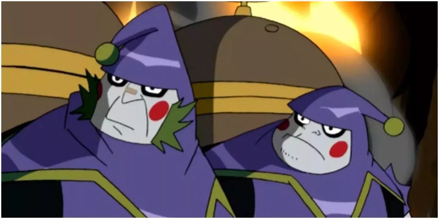 Los dibujos animados del DCAU no fueron los únicos que dieron al Joker unos secuaces únicos. Batman introdujo a Punch y Judy, una pareja de enormes matones musculosos que eran los cómplices recurrentes del Joker. A diferencia de otros matones recurrentes del Joker (por ejemplo, Rocco y Henshaw de Batman: The Animated Series), iban disfrazados como su jefe, con maquillaje de payaso y trajes morados. Aparecieron por primera vez en el final de la primera temporada, "The Rubber Face Of Comedy/The Clayface of Tragedy", y continuaron apareciendo durante toda la serie, permaneciendo totalmente silenciosos (salvo una vez en la que Clayface se hizo pasar por ellos).
