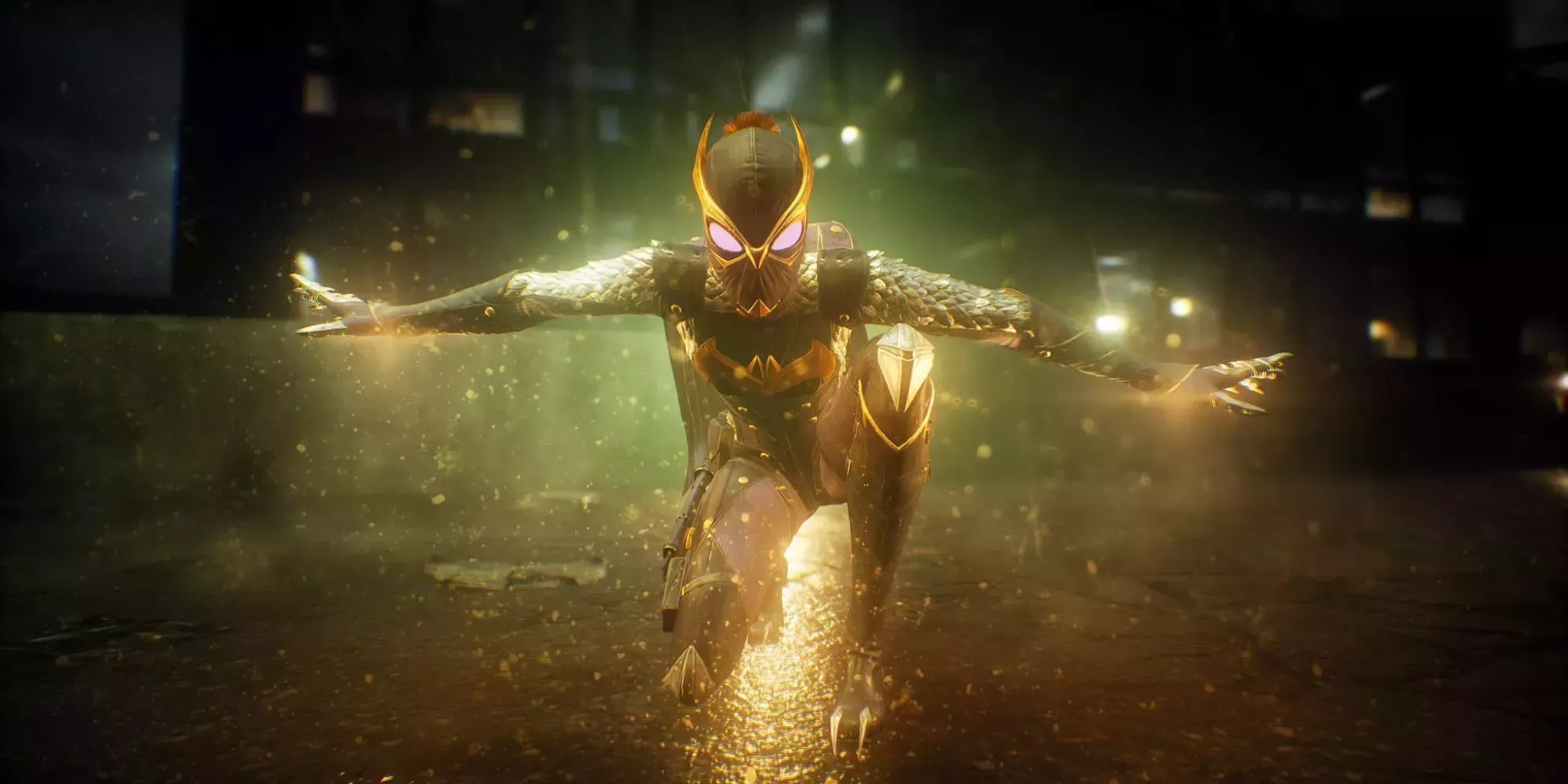 Knightwatch es simple pero efectivo, aunque solo sea un transmog sin opciones para cambiar el equipo o el color. El épico diseño de este traje es cortesía del famoso artista y jefe creativo de DC, Jim Lee, que diseñó el set de Knightwatch para Gotham Knights.