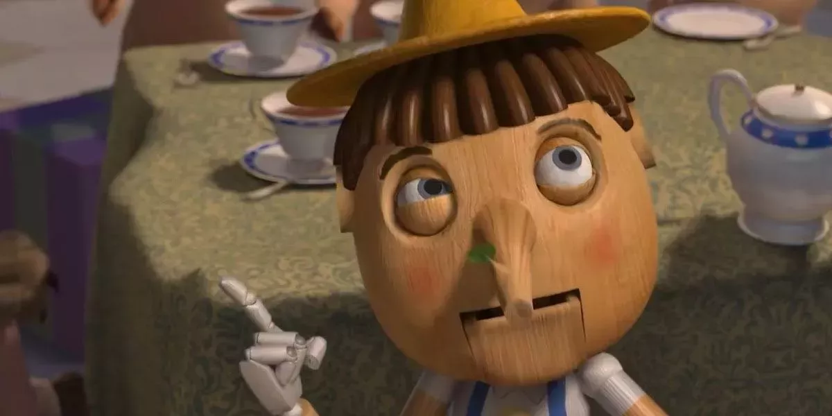 Pinocho fue presentado en la primera película y rara vez desempeñó un papel esencial. Se le utilizaba sobre todo como alivio cómico, y muchos chistes se hacían a costa de su naturaleza de muñeco.