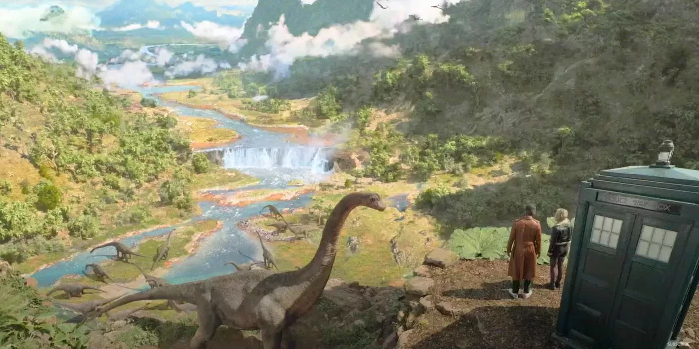 Uno de los principales escenarios desvelados por el nuevo tráiler es la Tierra prehistórica, con un vistazo a la TARDIS en lo alto de un afloramiento rocoso, con vistas a un grupo de diplodocus. Por supuesto, no es la primera vez que el Doctor se encuentra con dinosaurios en sus viajes a través del tiempo y el espacio. Sin embargo, es sorprendentemente la primera vez que la era prehistórica nativa de los dinosaurios ha sido presentada.