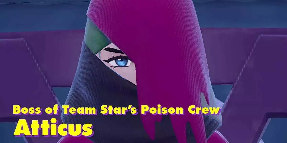 En cuanto a dificultad y ubicación en el mapa, el líder de tipo Veneno del Escuadrón Navi, Atticus, se considera el tercer desafío del Equipo Estrella. Atticus se apoya mucho en su obsesión por los ninjas y el misticismo en general, pero este combate contra el jefe es otro que se puede superar fácilmente con contadores superefectivos.
