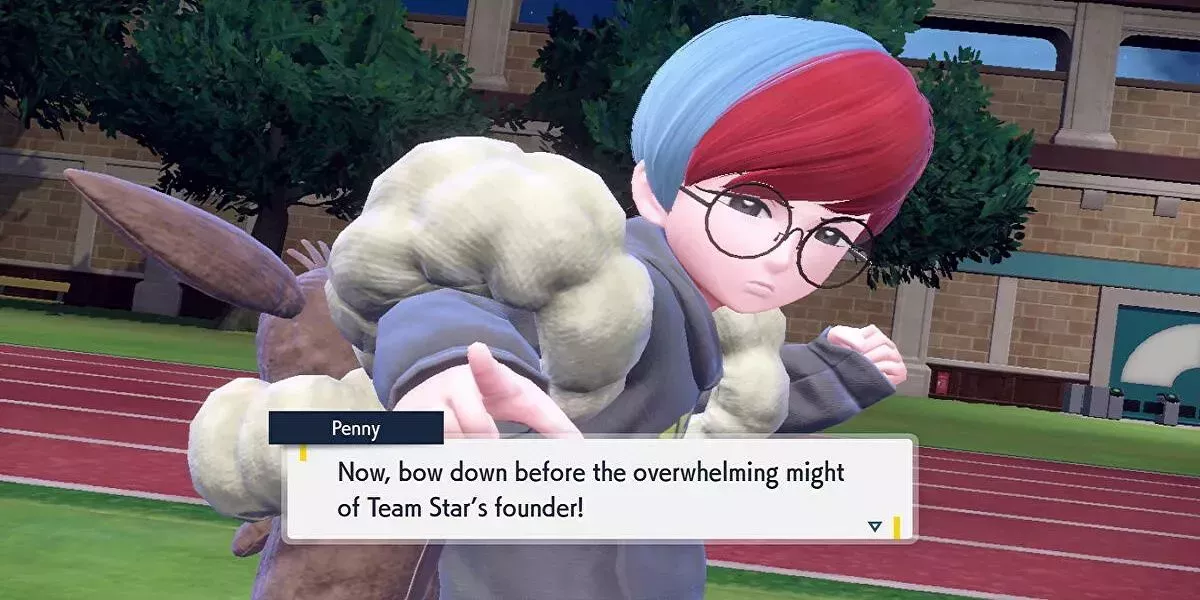 Penny tiene a Umbreon, Jolteon, Vaporeon, Flareon y Leafeon en el nivel 62, y a su as de tipo Hada Sylveon en el 63. Algunos jugadores la han visto usar Ojos de Muñeca con todos sus Pokémon sin aprovechar las caídas de Ataque. Sin embargo, para aquellos que tienen una batalla real con ella, puede ser un serio problema con toda esa cobertura. El tema de la batalla y la historia que hay detrás se suman a este emocionante equipo, haciendo que la batalla contra el jefe sea increíblemente intensa a la par que divertida. Se puede volver a luchar contra Penny en el Torneo Ace de la Academia, y sus Eeveeluciones son aún más fuertes en los niveles 69 y 70.