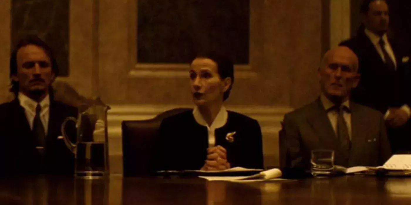 Posiblemente el personaje más sorprendente que regresa es la doctora Vogel (Brigitte Millar), que apareció por última vez en Spectre. Vogel es un miembro de Spectre que asiste a la reunión de la junta directiva de la organización en Roma, donde da cuenta de sus avances en el tráfico de personas y la vigilancia global. La reunión se ve interrumpida por la llegada de James Bond, y los miembros de Spectre escapan en medio del caos.