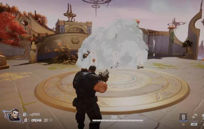 Para aumentar aún más su daño, Frank puede llamar a una torreta de exterminio, que es una ametralladora montada que inflige un daño potente y persistente desde un punto fijo. Puede servir tanto para acabar rápidamente con todo un equipo como para distraer a tus aliados y que puedan flanquearlos.