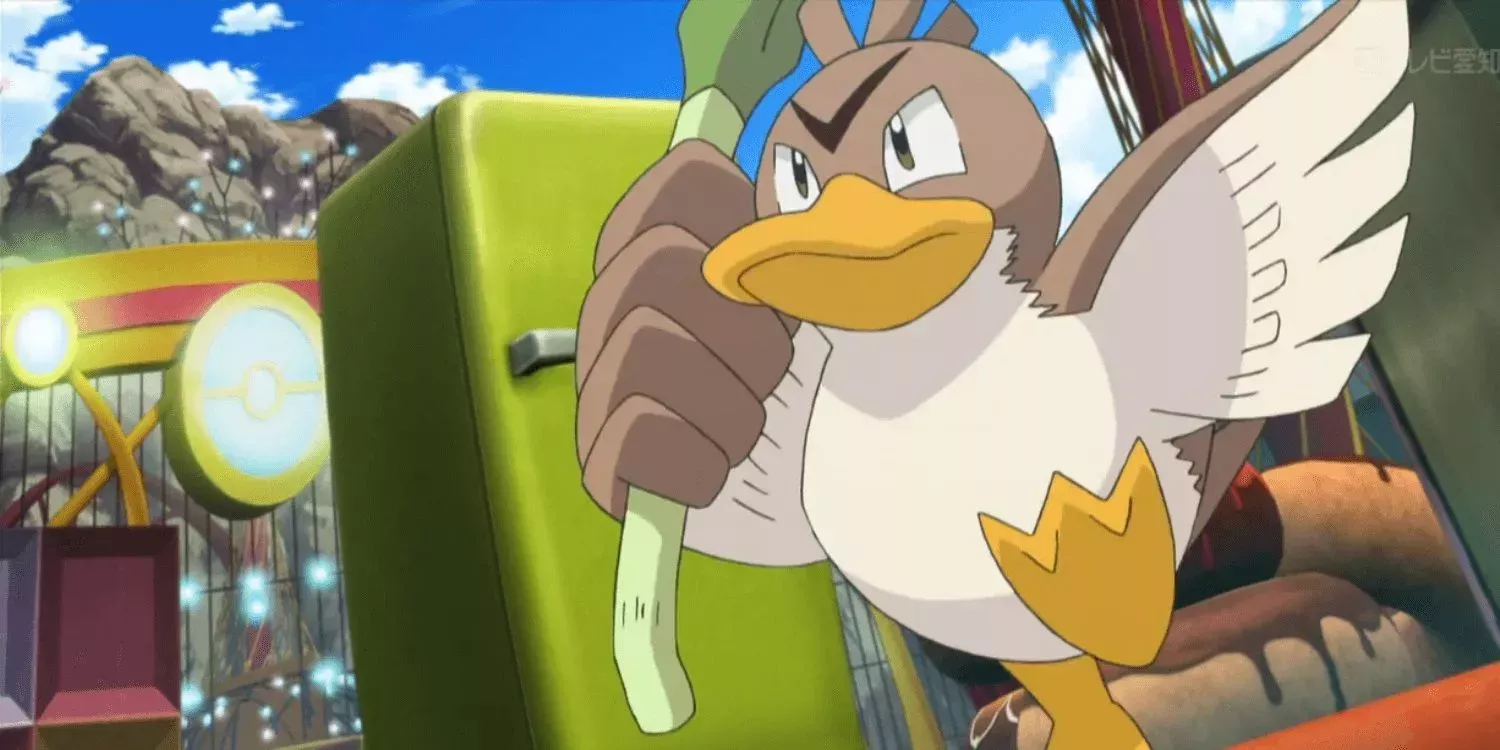 Farfetch'd pertenece a la Generación 1, y siempre ha sido único. Es un Pokémon de tipo dual Normal/Volador que parece un pato marrón claro con el vientre blanco y el pico amarillo. También tiene una marca en forma de V en la frente. Todos los Farfetch'd pueden verse llevando un tallo de puerro o una cebolleta con sus alas.