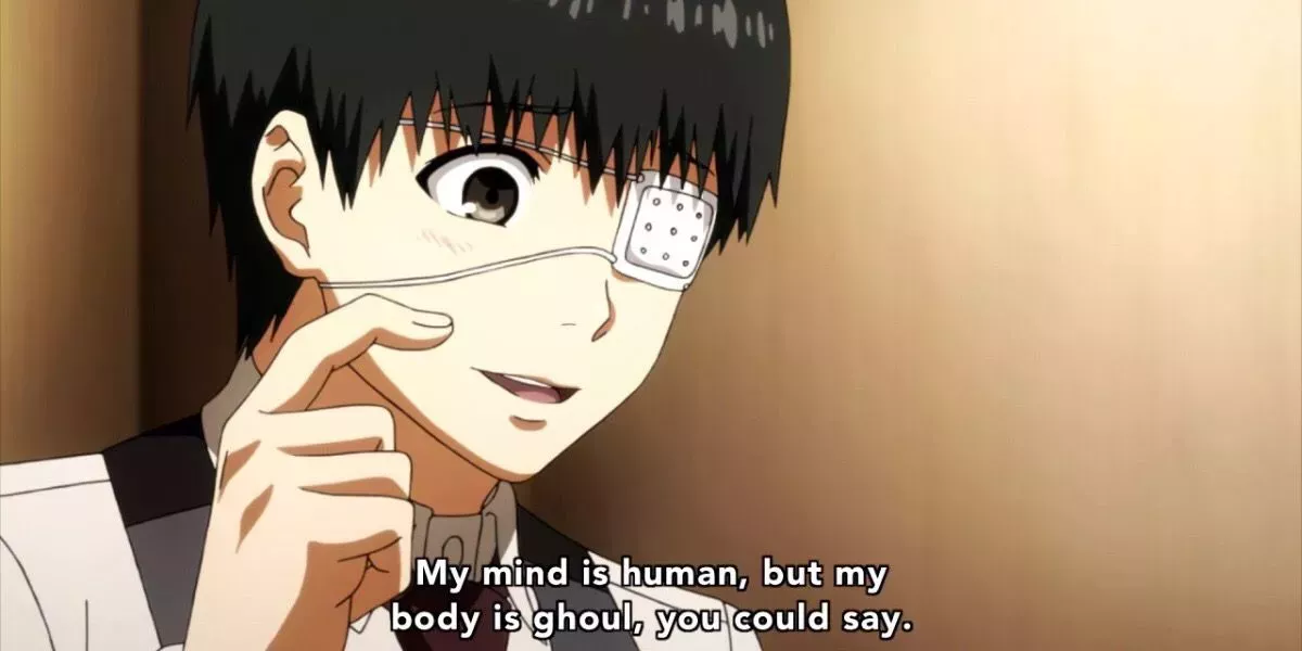 Como personaje, la progresión mental de Kaneki Ken es una de las mejores cualidades tanto de él como del manga. Al principio de la historia, Kaneki se da cuenta de que el mundo está lleno de atrocidades causadas tanto por los humanos como por los ghouls. Al principio, culpa al mundo de haberle convertido en un Ghoul.