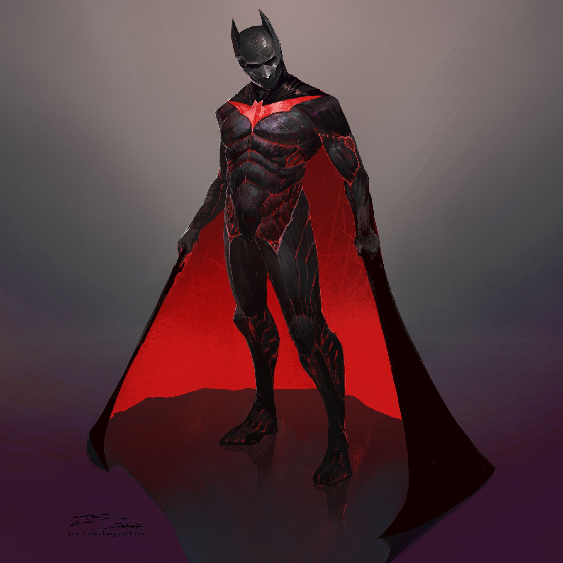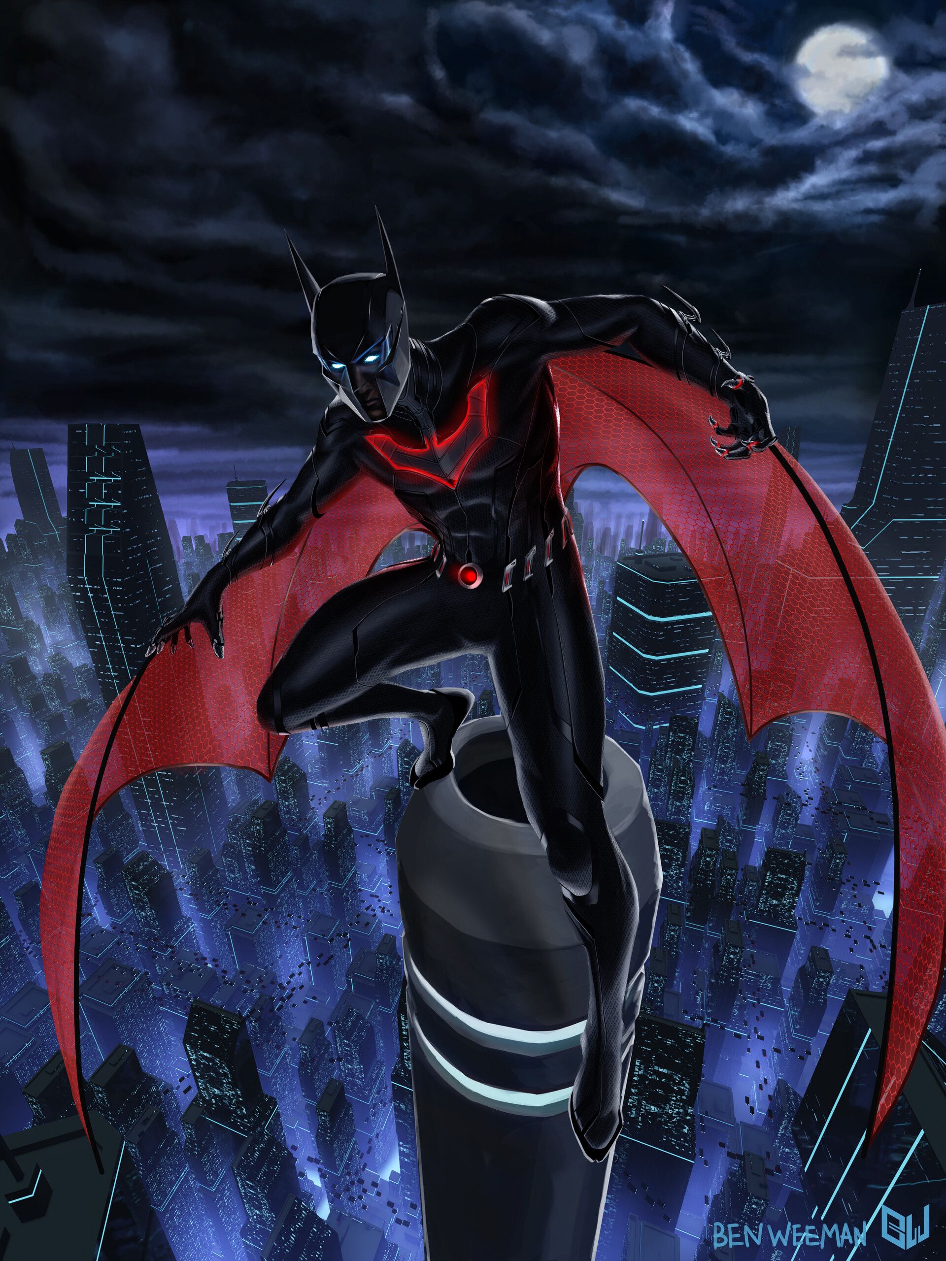 Ben Weeman colocó esta pieza en su ArtStation junto con un número de variaciones, algunas de las cuales incluso revelan la cara de Terry completamente. A los fans de Batman Beyond les gusta mucho esta pieza por el hecho de que las alas de Terry son holográficas en vez de de de tela.
