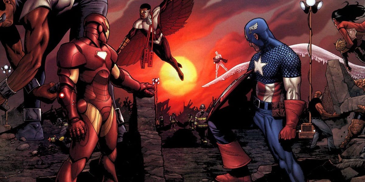 Cuando el gobierno de Estados Unidos aprobó la Ley de Registro de Superhéroes, trazó una línea firme en la arena entre los que querían que se revelara su identidad y los que no. Los dos íconos de Marvel Comics, Iron Man y Captain America, se opusieron cuando tanto la libertad como el control se convirtieron en los temas principales del evento.