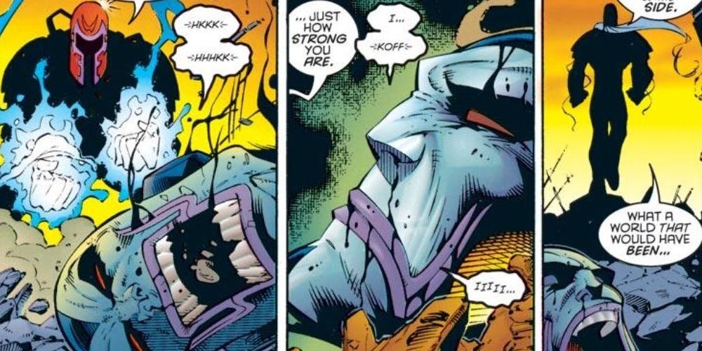 Entre toda la carnicería y la destrucción, fuimos testigos de Havok y Cíclope trabajando para el Apocalipsis, lo que finalmente llevó a una pelea cuando se revela que Cíclope no es exactamente amigo del déspota mutante, y Coloso se vuelve loco y mata a Iceman y a su esposa Kitty Pryde para salvar a su hermana menor Illyana. Es un evento épico que se desarrolla a lo largo de 8 miniseries, cada una de las cuales tiene un efecto devastador en la población del mundo.