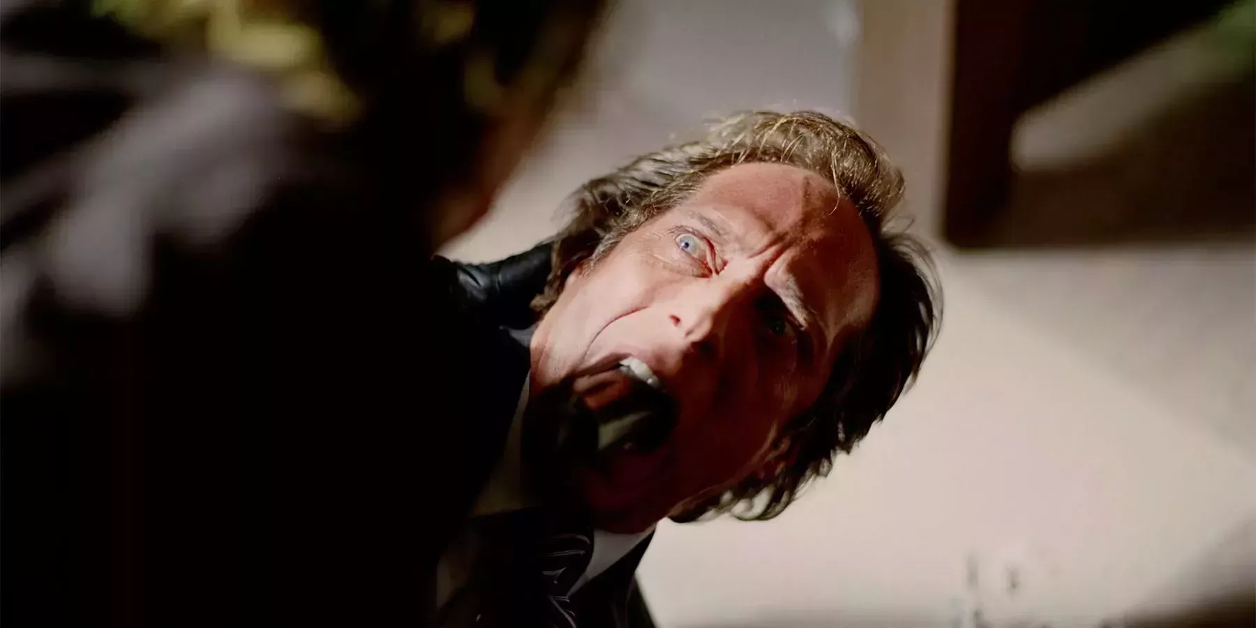 La capacidad de David Dasmalchian para ser perturbador fue utilizada maravillosamente por James Gunn como Polka-Dot Man en The Suicide Squad. Christopher Nolan vio su potencial y le dio el papel de Thomas Schiff, un antiguo residente del Asilo Arkham, en El Caballero Oscuro. Mientras el Departamento de Policía de Gotham City llora la pérdida de la comisaria Gillian B. Loeb, todo el cuerpo se reúne para el funeral público. El Joker tiene en su punto de mira al alcalde Anthony García mientras éste pronuncia el panegírico.