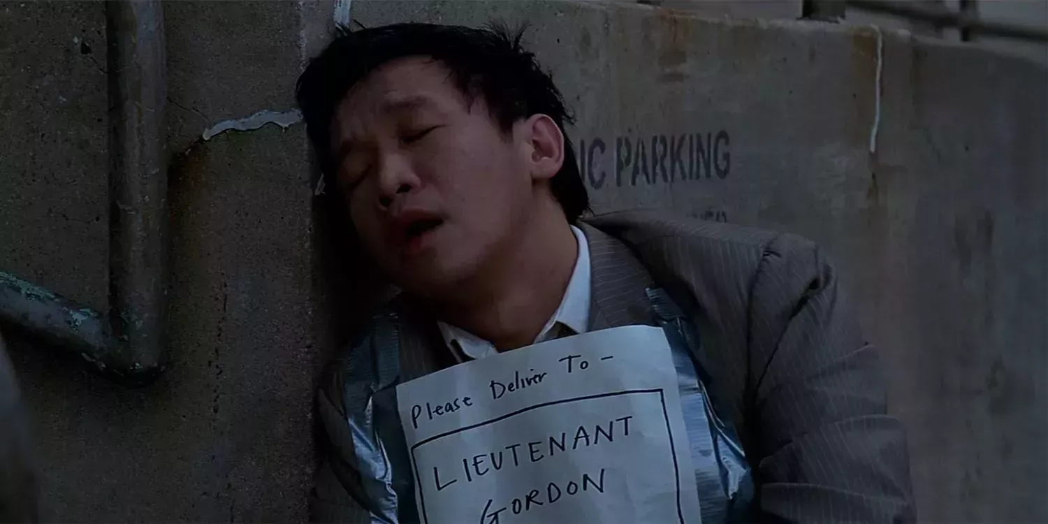 Durante esta intempestiva huida, Lau aparece en vídeo para informar a sus clientes criminales de su fortuna oculta. Aunque es lo suficientemente valiente como para ocultar el dinero de la mafia, el Joker aparece con una risa lenta y siniestra. Señala a Lau en la pantalla diciendo:"Reconozco a los chivatos cuando los veo."