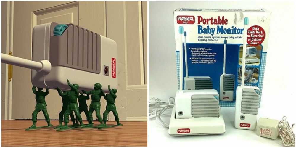 El vigilabebés es en realidad un vigilabebés portátil Playskool, muy popular a principios de los años 90. Curiosamente, el vigilabebés de Playskool alcanza un precio elevado en las subastas públicas, en gran parte debido a su reconocimiento por la franquicia de Toy Story.