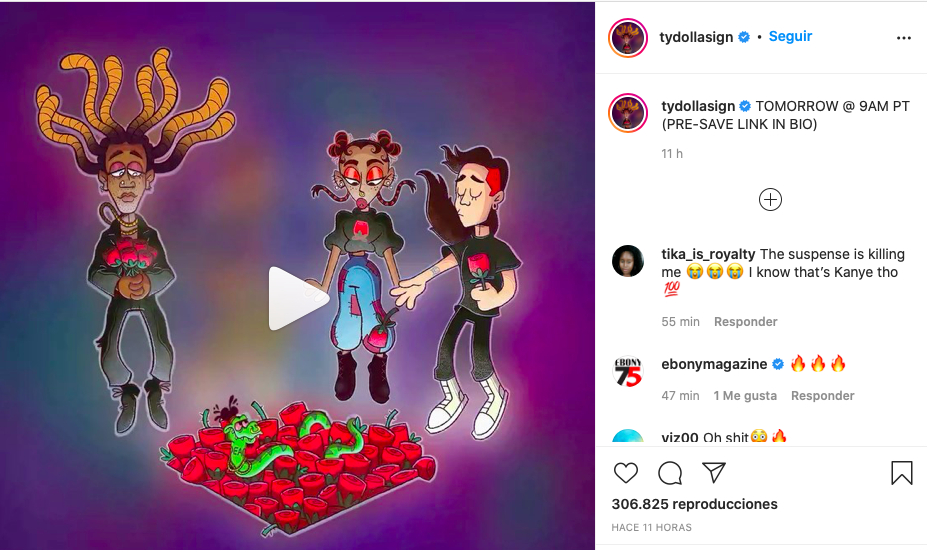 El anuncio fue burlado en los últimos días en las páginas de medios sociales de Ty Dolla $ign, presentando interpretaciones animadas de los artistas invitados que se desvanecen en cada post. Puedes pre-guardar la próxima canción desde este enlace.