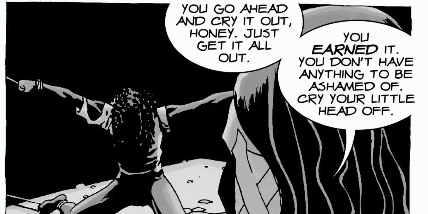 Aunque el contenido de The Walking Dead #28 es gráfico, demuestra cómo los cómics pueden utilizarse para confrontar y explorar ideas desafiantes. Aunque, en última instancia, es el lector quien debe decidir por sí mismo si las imágenes de un cómic son apropiadas o no para la historia que los creadores intentan contar, los llamamientos a la exclusión total de este tipo de imágenes de los cómics infravaloran profundamente la capacidad del medio para abordar temas e ideas complejas de un modo que ninguna otra forma de narración puede hacer.