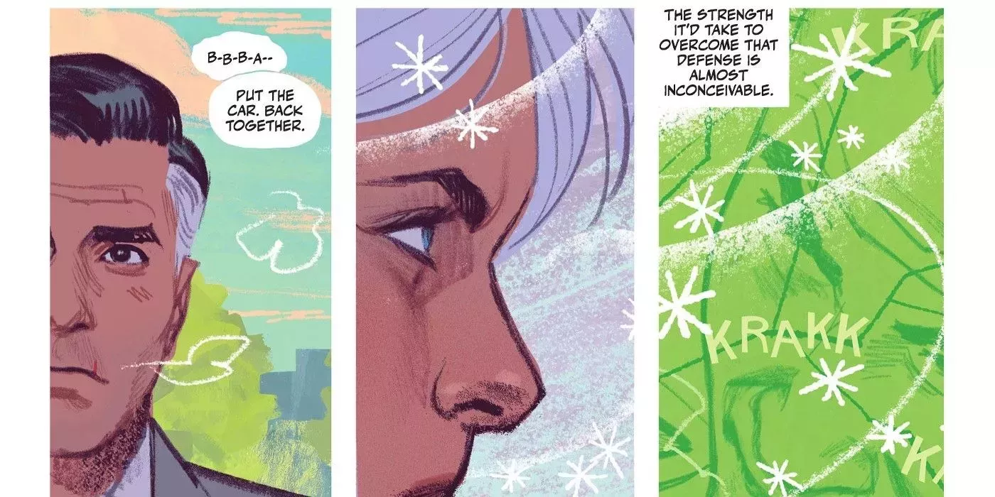 Eso hace que lo ocurrido en The Human Target #3 (de Tom King, Greg Smallwood y Clayton Cowles de VC) sea aún más impactante. Mientras Christopher Chance investigaba a los miembros de la estrafalaria Liga de la Justicia Internacional como sospechosos de su propio asesinato, molestó a uno de sus miembros más poderosos. El Linterna Verde Guy Gardener le guardaba rencor a Chance por haberse juntado con su interés amoroso de siempre, Tora Olafsdotter, alias Hielo. Cuando Guy llevó las cosas demasiado lejos, Hielo decidió ponerle fin. Incluso el Objetivo Humano se sorprendió de cómo lo consiguió.