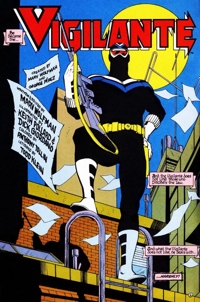 Siguiendo la corriente de justicieros urbanos de la década de los ochenta, Adrian Chase se introdujo en uno de los anuales de ‘New Teen Titans’ como un fiscal de distrito de la ciudad de New York que había visto como su familia era asesinado por orden de un grupo de mafiosos y tras perder la fe en el sistema que él representaba adoptaba la identidad de un antiguo justiciero del Viejo Oeste, el Vigilante, para impartir su propia justicia a aquellos criminales que no habían sido castigados por la ley.