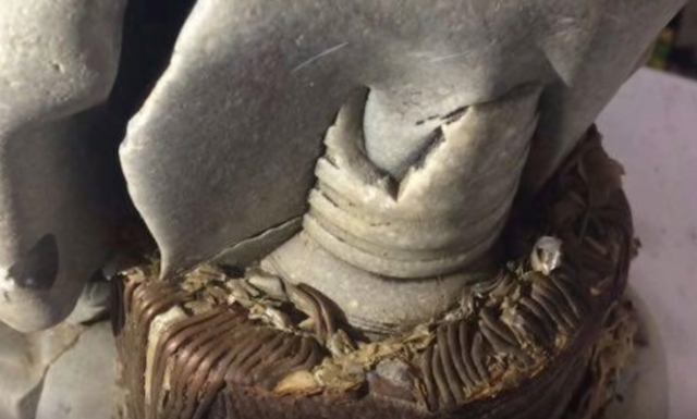 Y es que, además, la bobina de cables de cobre no se encuentra insertada simplemente en la ranura de corte, sino que forma un todo con la piedra, como si la piedra se derritiera, y luego le dio la forma necesaria para crear un transformador.