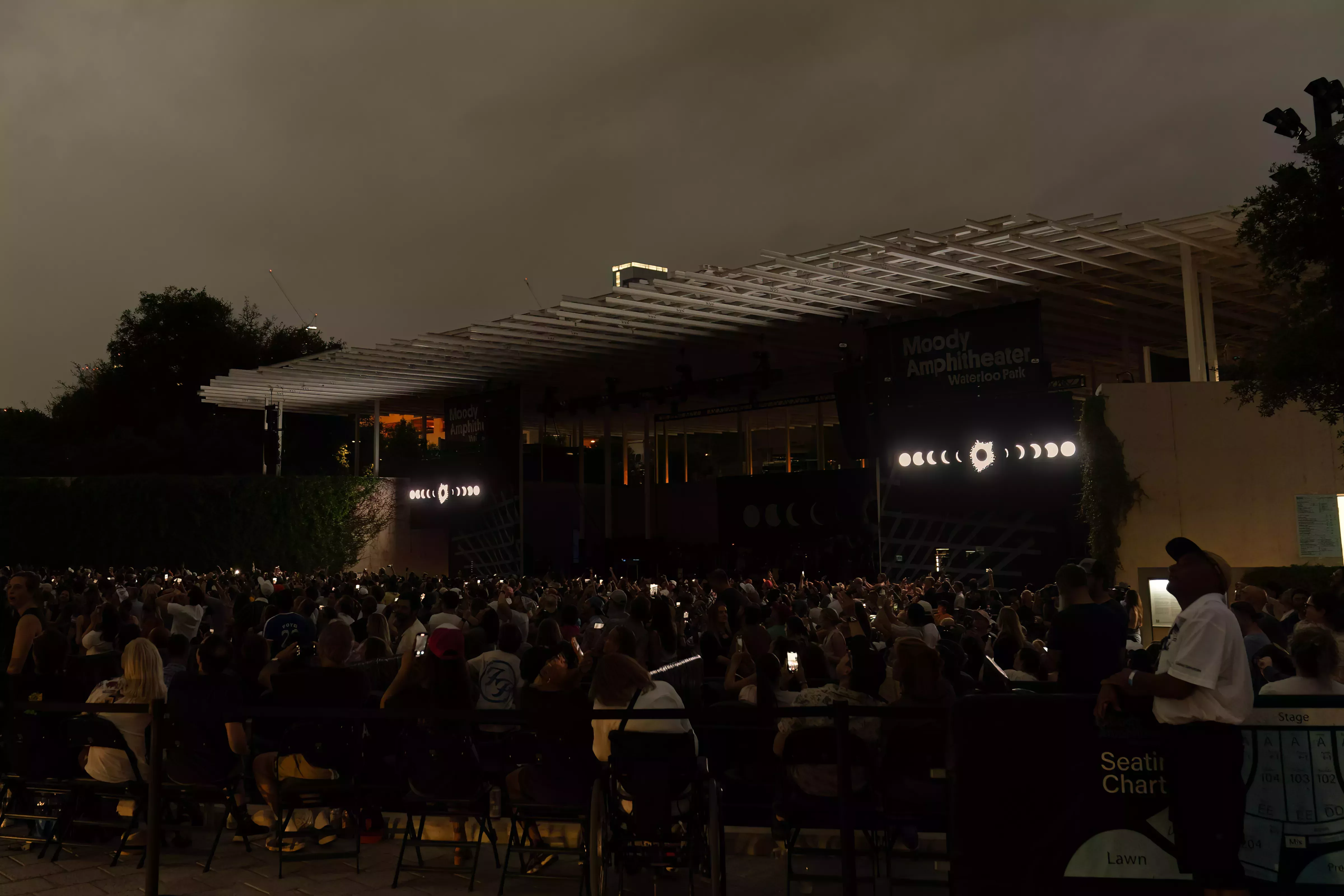 A pesar de todo el alboroto por tratarse de un espectáculo sobre un eclipse, la mayor parte del público se contentó con mantener sus ojos desencajados sobre Koenig y compañía, contentos con esperar a que oscureciera realmente para prestar demasiada atención a las travesuras del cosmos. La mayoría de los asistentes eran seguidores de Vampire Weekend, y la búsqueda del eclipse quedaba en un segundo plano. Sin embargo, a medida que se acercaba la totalidad, Koenig anunció que la banda se tomaría un breve descanso para que todo el mundo pudiera concentrarse en la inminente oscuridad. Supuse que la banda elegiría su canción más espacial y tocaría durante los 3 o 4 minutos de la totalidad de Texas. O que tocarían "Gen-X Cops", la nueva canción que empieza con la frase: "Blacken the sky and sharpen the axe" ("Ennegrezcan el cielo y afilen el hacha"), o que versionarían a Pink Floyd o Bonnie Tyler. ("Total Eclipse of the Heart" se utilizó al menos como música de entrada de la banda).
