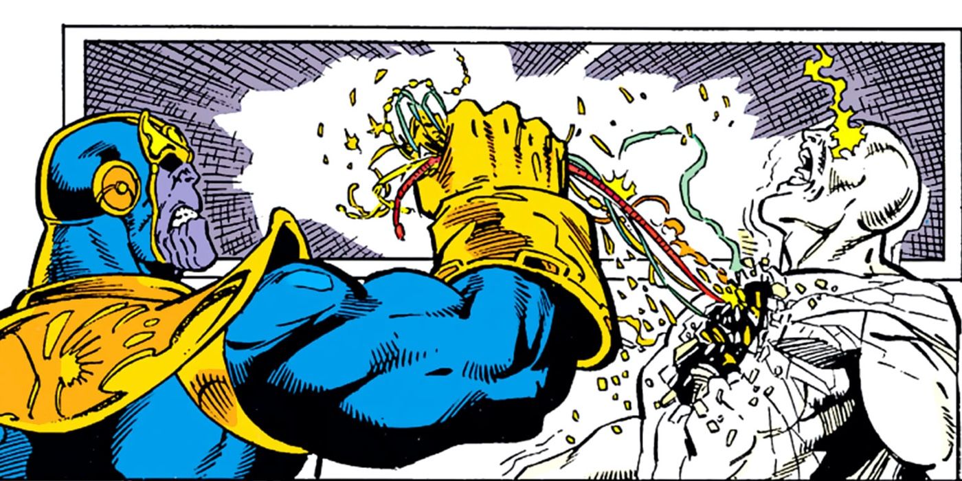 No todos eran Vengadores en ese momento, pero lo serían más tarde, o estaban en la batalla a todos los efectos. Los supervivientes llevaron la lucha directamente a Thanos, como lo hicieron en el Universo Cinematográfico de Marvel, pero las cosas resultaron diferentes en los cómics. Las cosas sólo se volvieron más mortíferas cuando los héroes más poderosos de la Tierra se enfrentaron al Titán Loco.