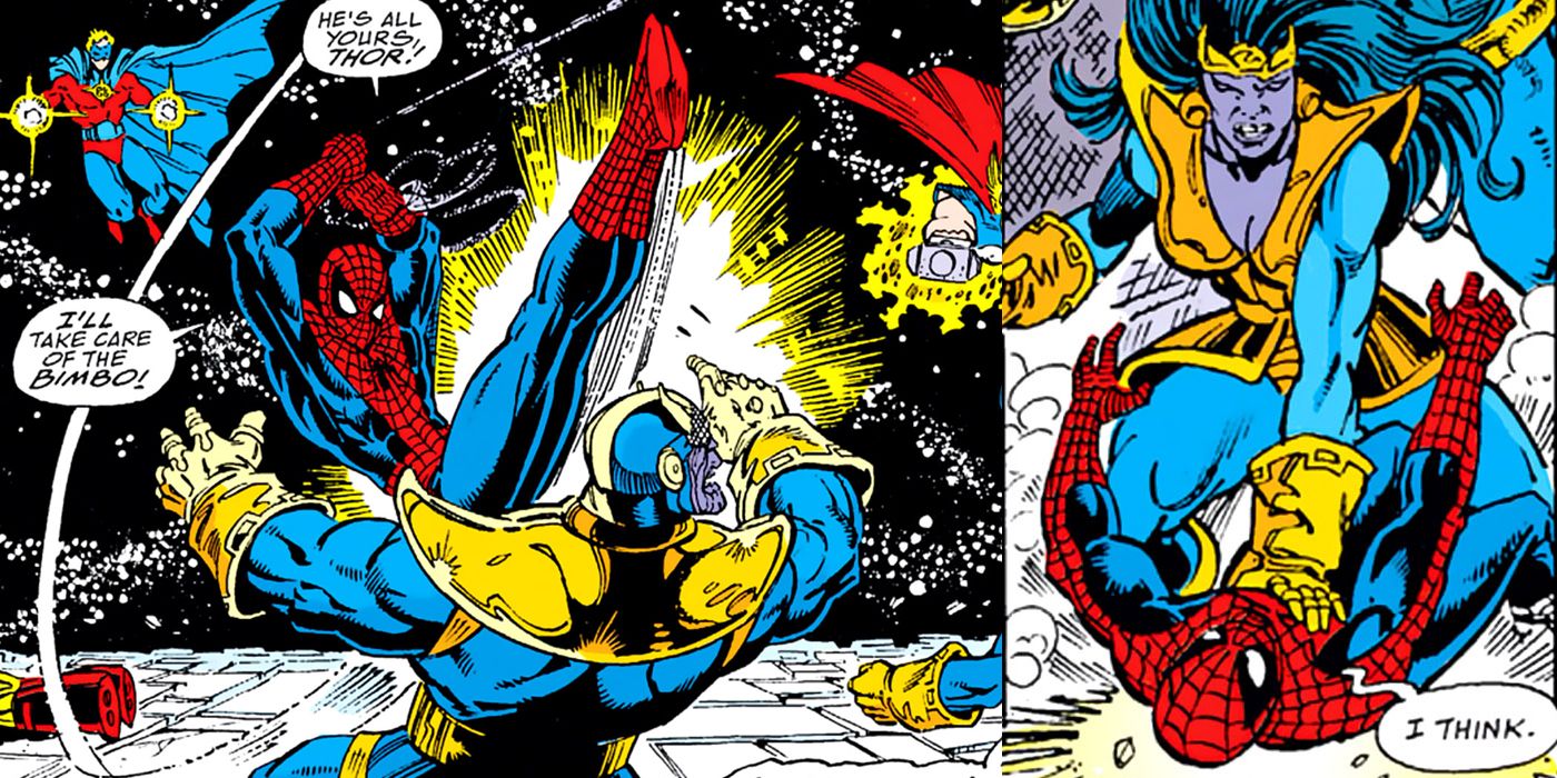 Peter Parker lo dio todo, pero como Iron Man, su derrota es demasiado brutal para ser testigo. Fuera del panel, Terraxia lo golpea hasta la muerte con una roca. Su muerte fue otro impactante recordatorio de que Thanos no necesitaba el guante para destruir a algunos de los mejores y más brillantes de Marvel.