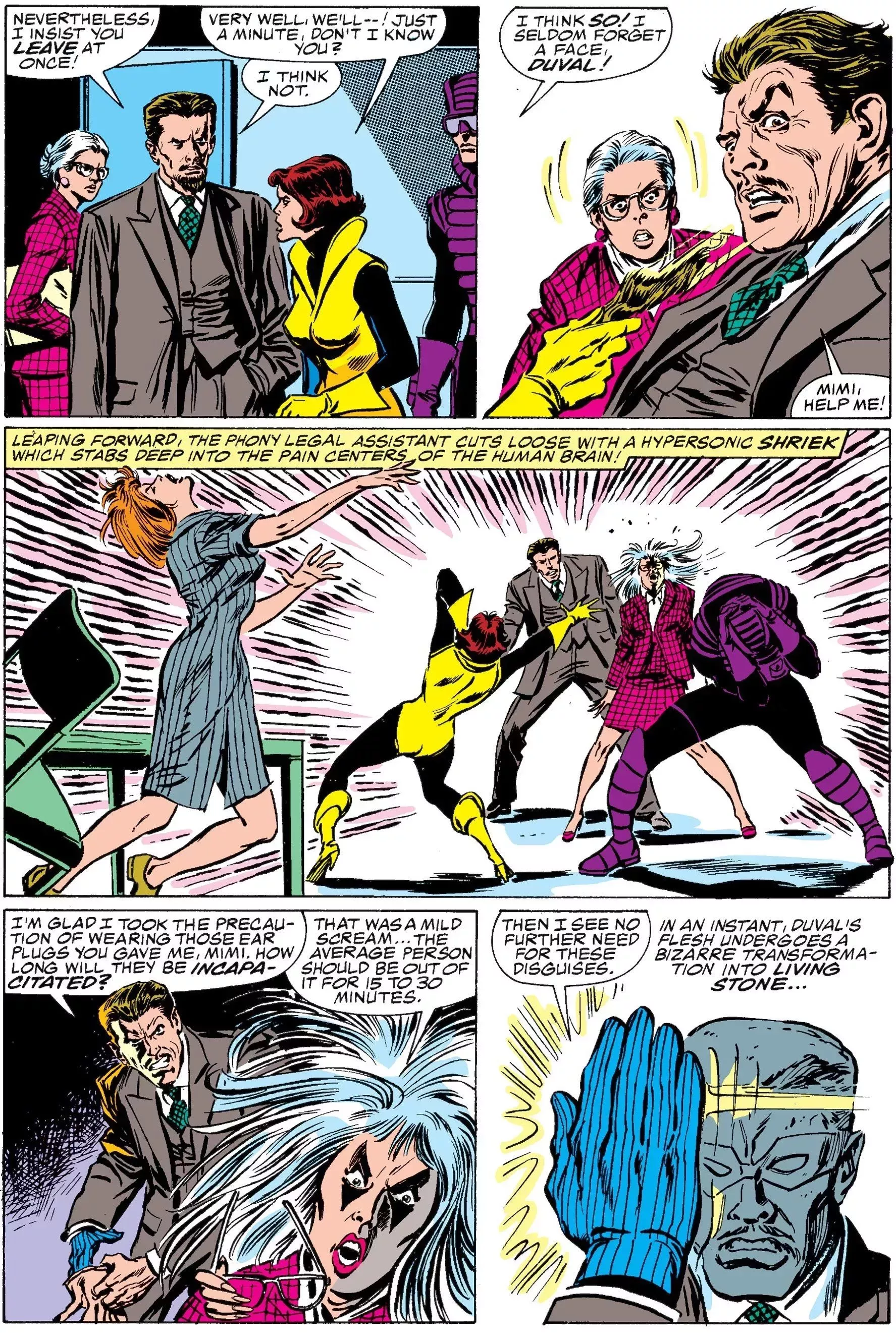 En el mencionado Avengers #271 (Por Stern, John Buscema y Tom Palmer), Avispa (junto con el mercenario, Paladín, con quien había estado saliendo casualmente en ese momento) está visitando al nuevo y villano Yellowjacket, en la cárcel, cuando es sacada de la prisión por Screaming Mimi y Grey Gargoyle.