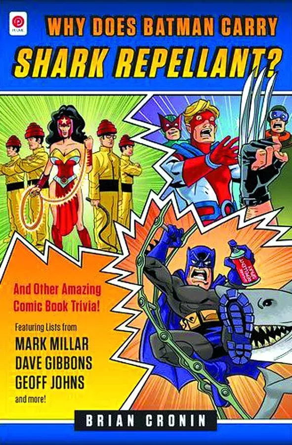 Aquí está mi segundo libro, ¿Por qué Batman lleva repelente de tiburones? La portada es de Kevin Hopgood (el que diseñó la armadura de War Machine).