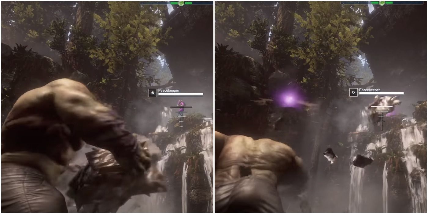 Para los ataques a distancia, Hulk sólo recoge enormes rocas y las lanza a sus enemigos. Sin embargo, si uno se cansa de lanzar trozos de roca del tamaño de un coche a sus oponentes, entonces hay otra gran manera de golpearlos desde lejos: ¡sólo hay que coger un enemigo y lanzarlo como una piedra de catapulta a sus amigos!