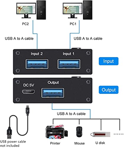 USB 3.0 Switch, 2 Puertos Conmutador USB 2 en 1 Salida para 2 Ordenadores Que comparten 1 Dispositivo USB, ratón, Teclado, escáner, Impresora