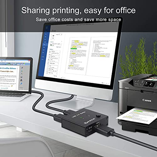 - Este interruptor USB permite que 2 ordenadores compartan 1 dispositivo USB, como impresora, escáner, ratón, teclado, lector de tarjetas, unidad flash y otros dispositivos USB. Dos cables negros 3.0 incluidos en el paquete.