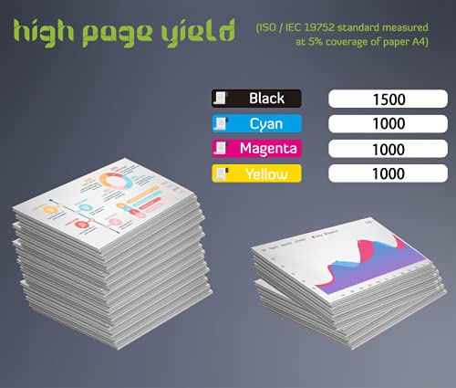 - Rendimiento de páginas: 1500 páginas para negro, 1000 páginas para cada color (5 porciento de cobertura en papel A4)